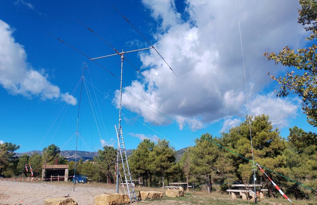 Es van instal·lar antenes per 5 bandes de la ona curta, les de 80 metres, 40 metres, 20 metres, 15 metres i 10 metres. En algunes bandes teníem més d’una antena, ja que es va experimentar amb antenes de diferents formats i angles de radiació. Vegeu les imatges al final de l’article.